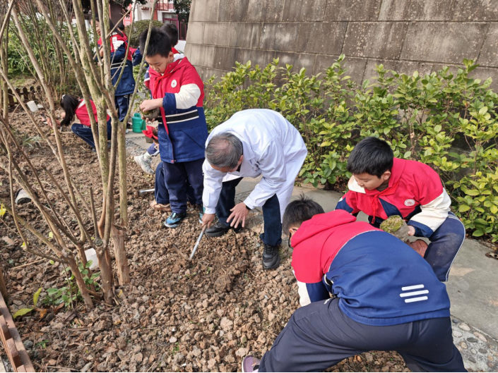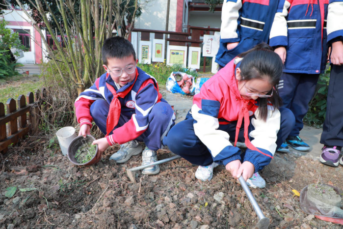 2025年12月17日,成都宝芝堂中医馆走进龙泉东山学校,与师生携手种下芍药花苗,成立“校园中草药种植基地”,校领导、全体师生共同参与,亲手栽种芍药幼苗,见证中草药基地正式成立,将一片充满生机的“百草园”搬进校园。