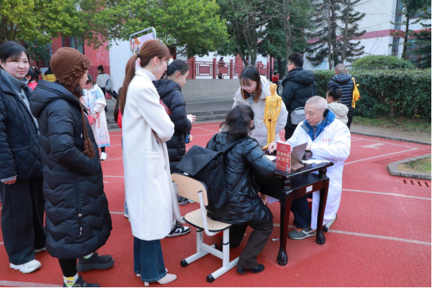 活动现场,成都宝芝堂中医馆的义诊展区前早早排起了长队。丁渝周副主任亲自坐诊,凭借丰富的临床经验,为前来咨询的师生和家长细致把脉,耐心询问身体状况。