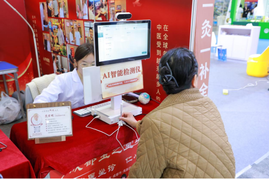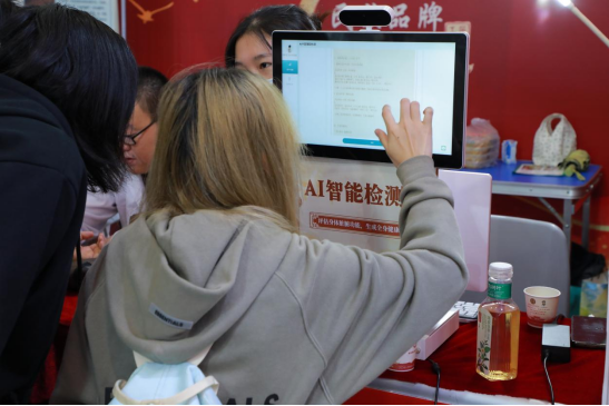 AI 智能检测区同样人气十足,一台小巧的检测设备前吸引大家驻足体验。工作人员会先引导大家,让面部正对设备镜头完成识别,再协助采集舌象信息,整个过程仅需一两分钟。待检测结束,设备很快生成一份详细报告,工作人员会在旁同步解读,指着报告上的体质类型、潜在健康风险等模块,让大家现场快速的拿到自己的检测结果,并现场为大家分析转化为易懂的健康建议,大家纷表示 “这趟来得太值了” 。